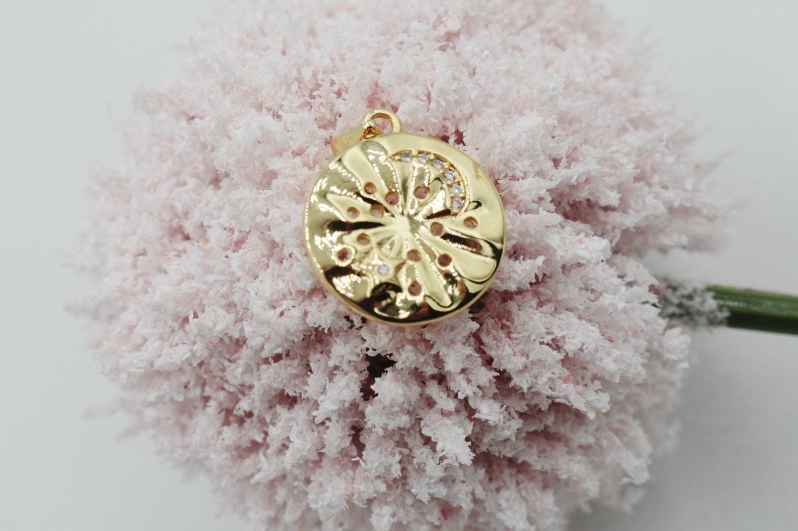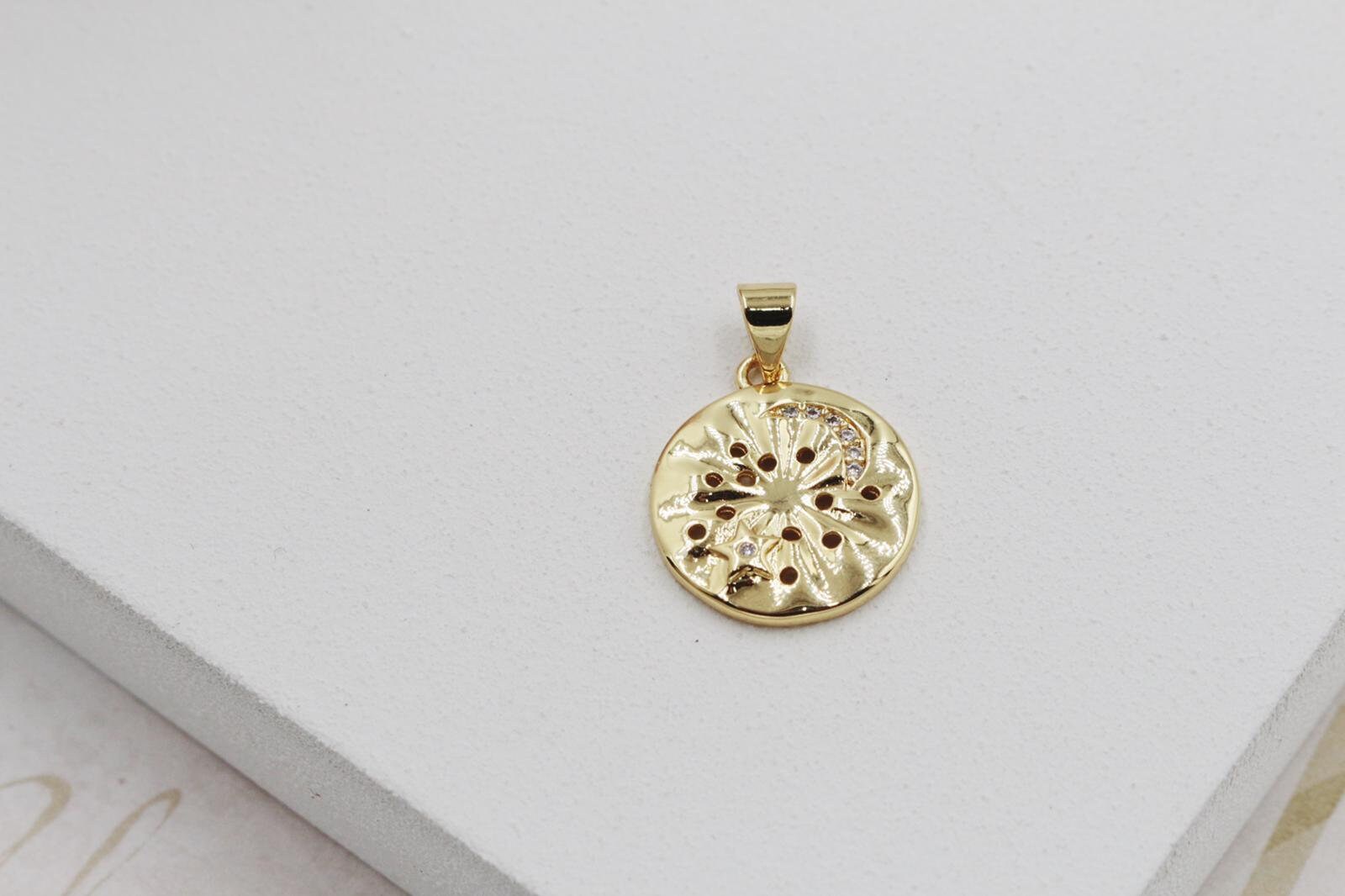 Wavy Medallion with Tiny Cubic Zirconia Moon Crescent and Star Detail Pendant